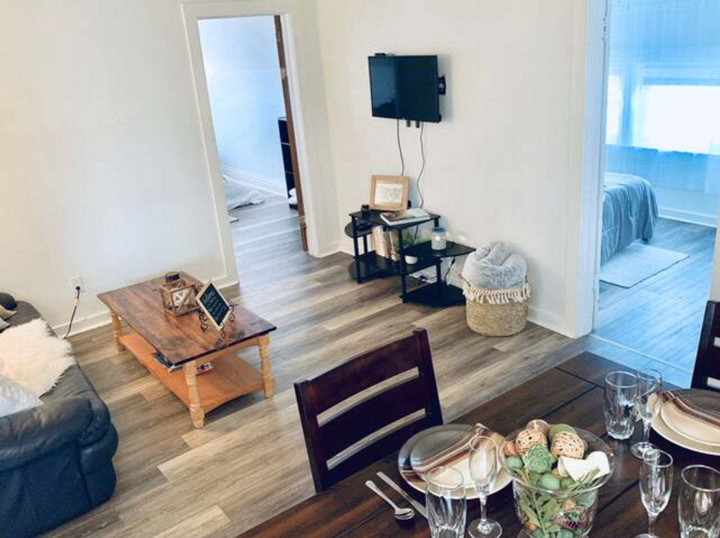 Beautifully remodeled 2 bedroom unit with included furnishing. Furnishings include beds, couch, dining set, cabinets, Roku TV, and decorations. Fully equipped unit with gas range, fridge, microwave, fireplace, and anything you may need in the kitchen. This unit boasts its own private entrance and personal parking spot. Ideal for short term leasing and easy single payment with everything included.