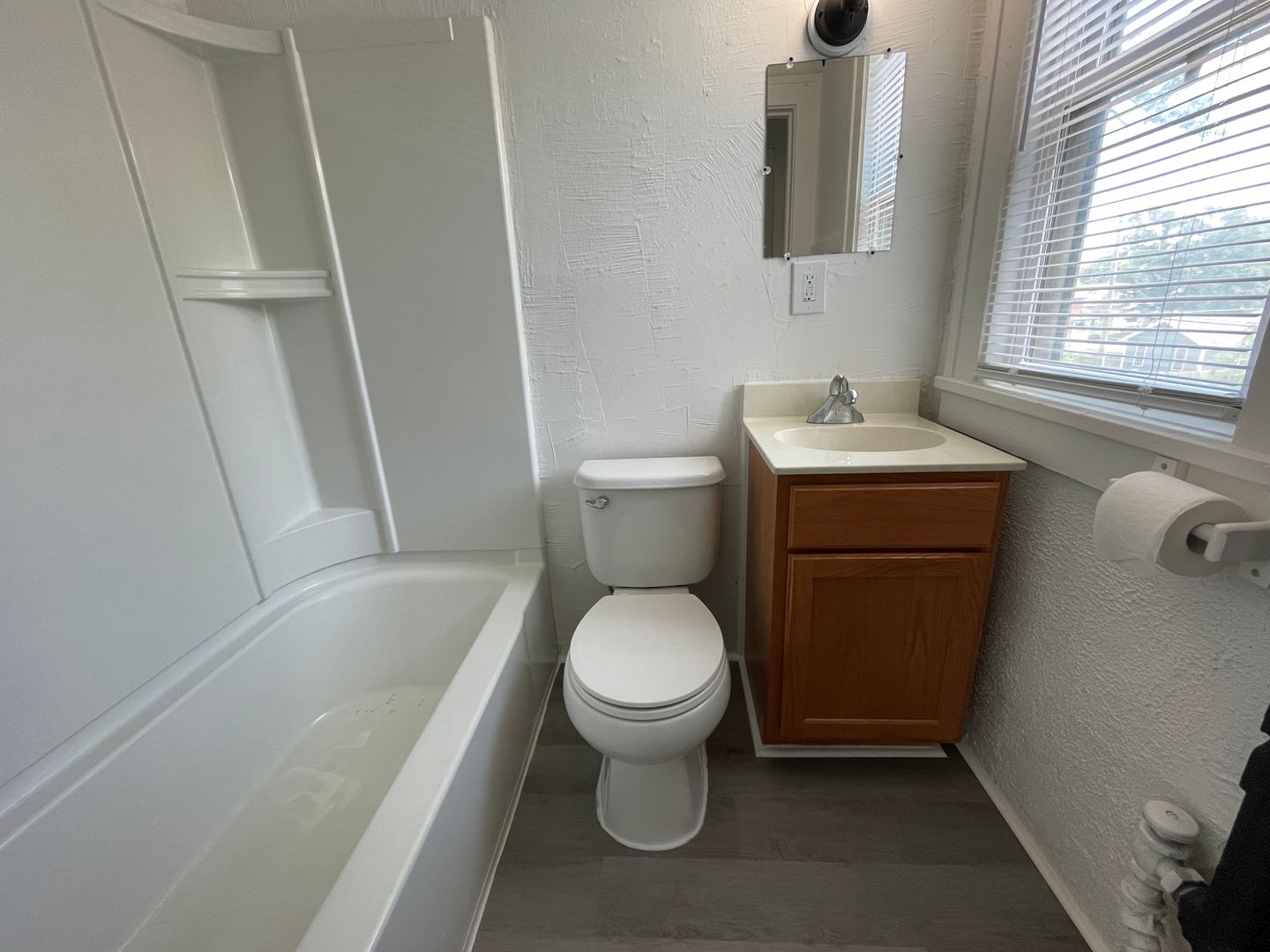 This updated unit features new cabinets, flooring, paint, and light fixtures, and updated bathroom. We have two identical units available.